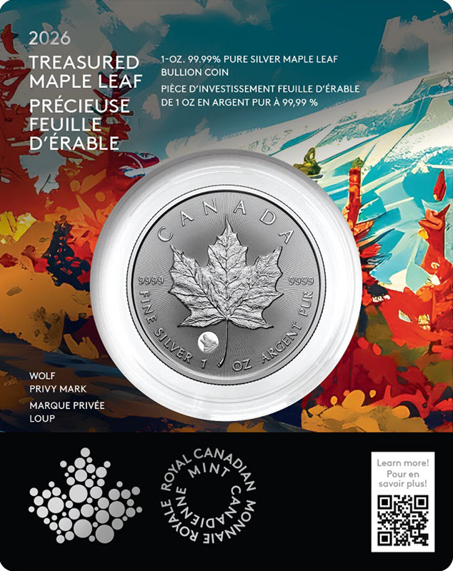 Эта чудесная серебряная монета - инвестиционный продукт премиум-класса в специальной упаковке с клеймом Волка. Каждая монета обработана с помощью MintShield™ — первого и единственного проверенного решения для уменьшения неприглядных белых или «молочных» пятен на серебряных инвестиционных монетах, разработанной Королевским монетным двором Канады. Поставляется в блистере с сертификатом подлинности. Тираж: 25000 штук.
