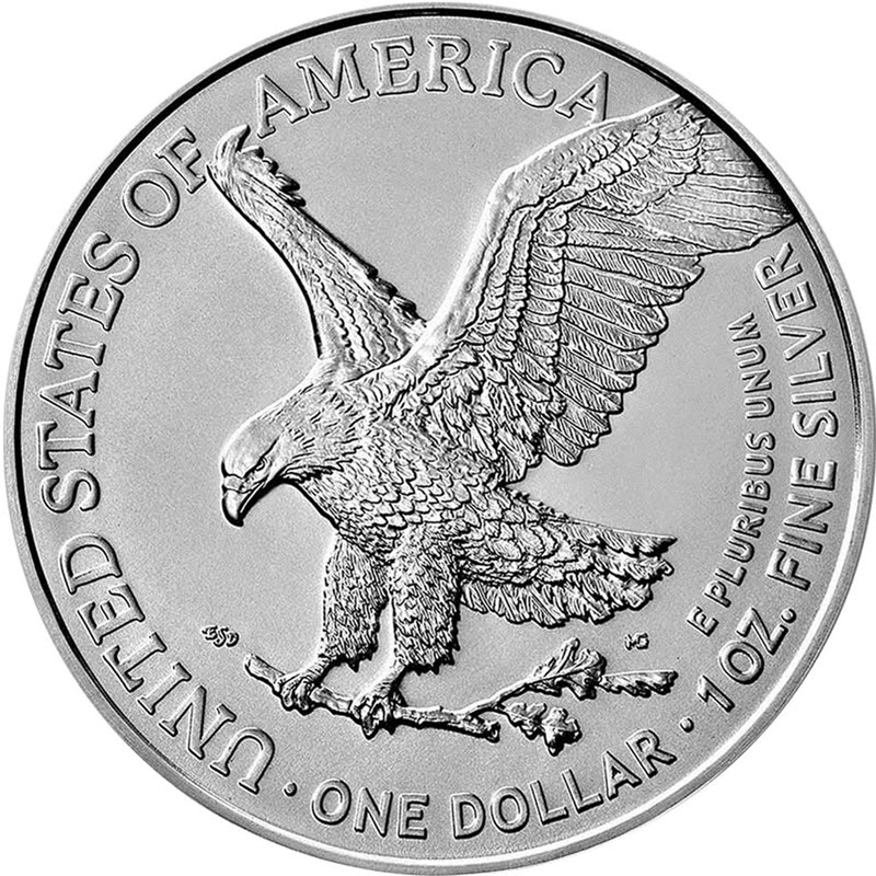 Монетный двор США представил новый дизайн реверса серебряных орлов 2021 года в ознаменование 35-летия программы монет американского орла. Дизайнер AIP Эмили Дамстра создала новый дизайн Серебряного орла 2021 года, который был создан художником-медальером Монетного двора Майклом Гаудиозо. В новом дизайне Серебряного орла изображен орел, летящий на посадку и несущий в когтях дубовую ветку, словно собираясь добавить ее в гнездо.