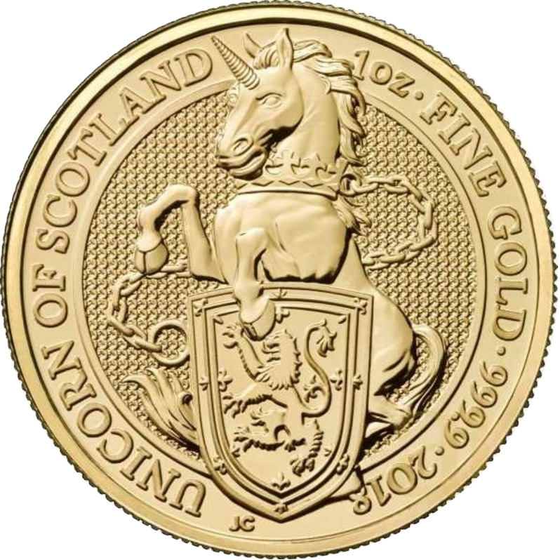 Золотая монета Великобритании "Звери Королевы. Единорог" 2018 г.в., 31.1 г чистого золота (проба 9999)