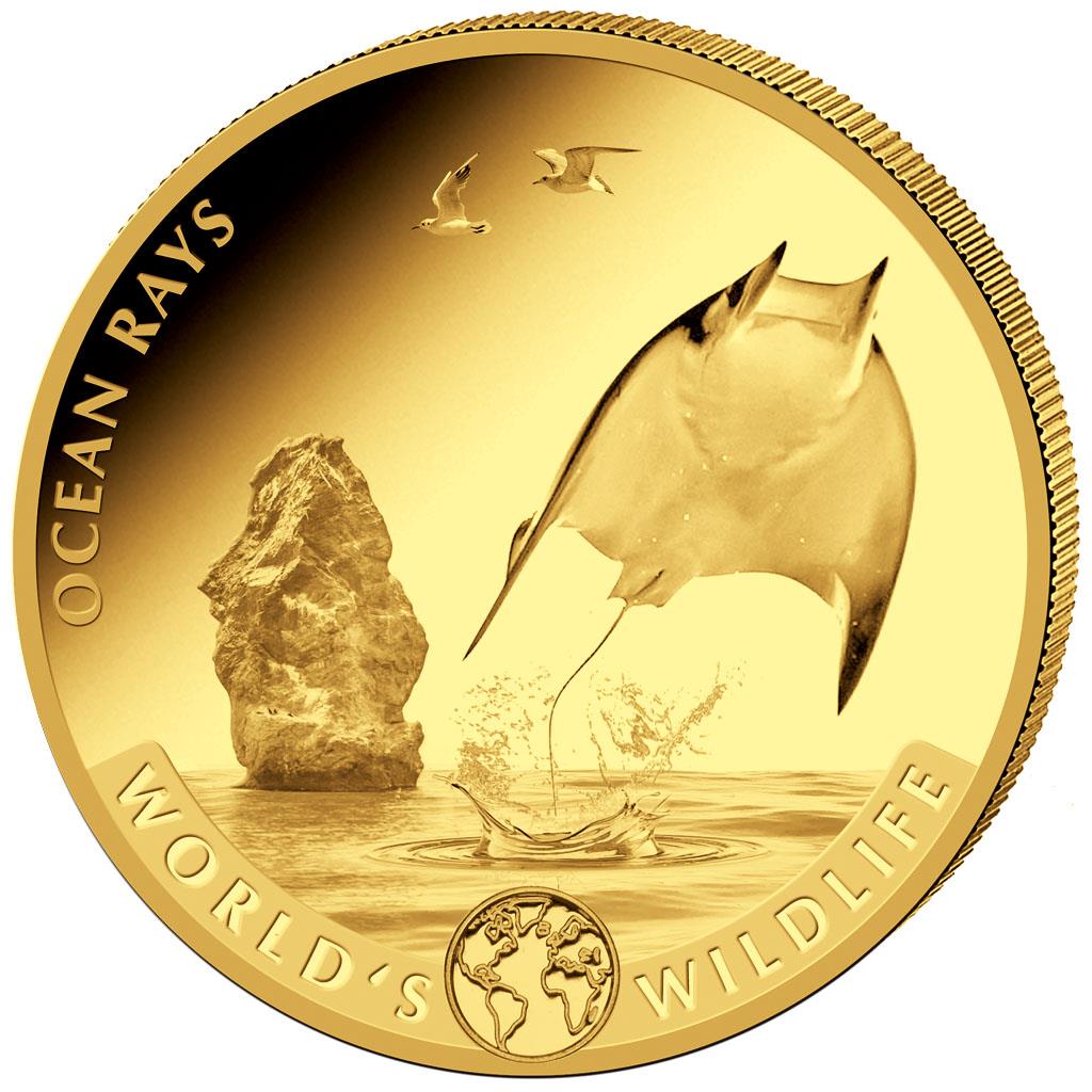 Инвестиционная монета премиум-класса из серии "Дикая природа мира" с изображением океанского ската.
