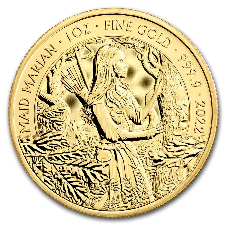 Золотая монета Великобритании "Мифы и легенды: Дева Мэриан" 2022 г.в., 31.1 г чистого золота (проба 0,9999)