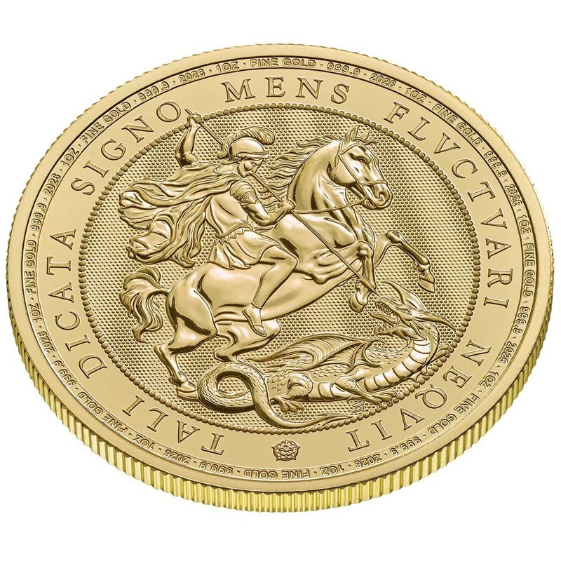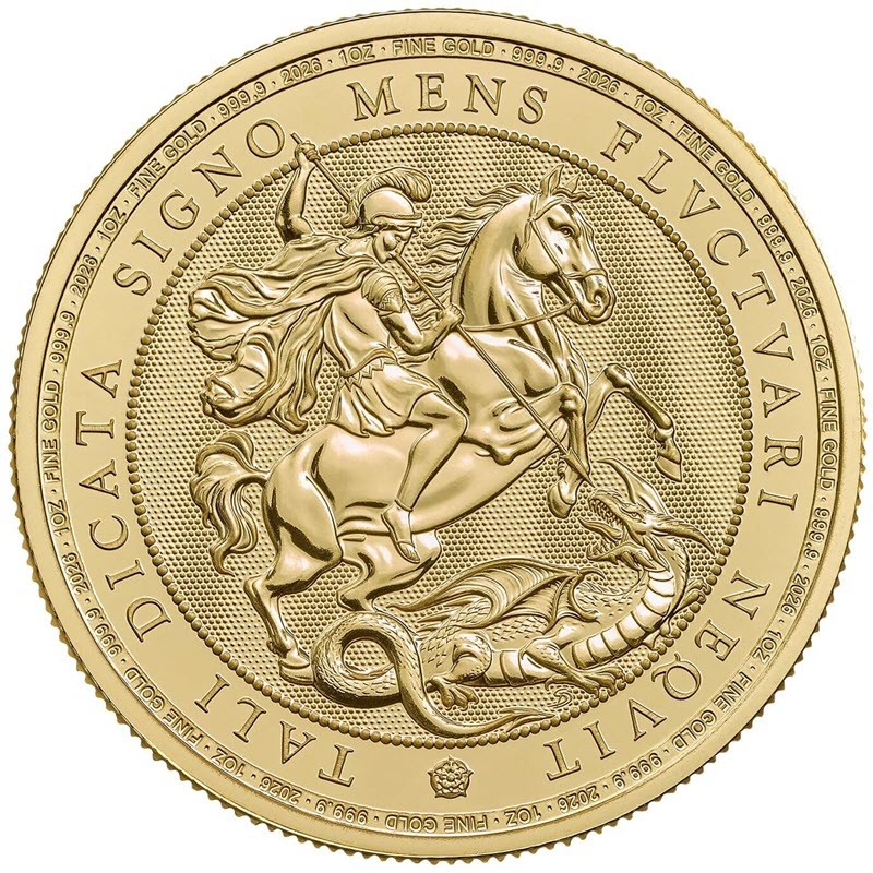 Золотая монета Великобритании «Святой Георгий и дракон» 2026 года от Королевского монетного двора весом в 1 унцию — третья в серии инвестиционных монет, посвященных этой легендарной истории.