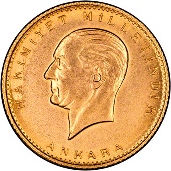 Золотая монета Турции "50 курушей" 1923 г.в., 3.31 г чистого золота (проба 917)