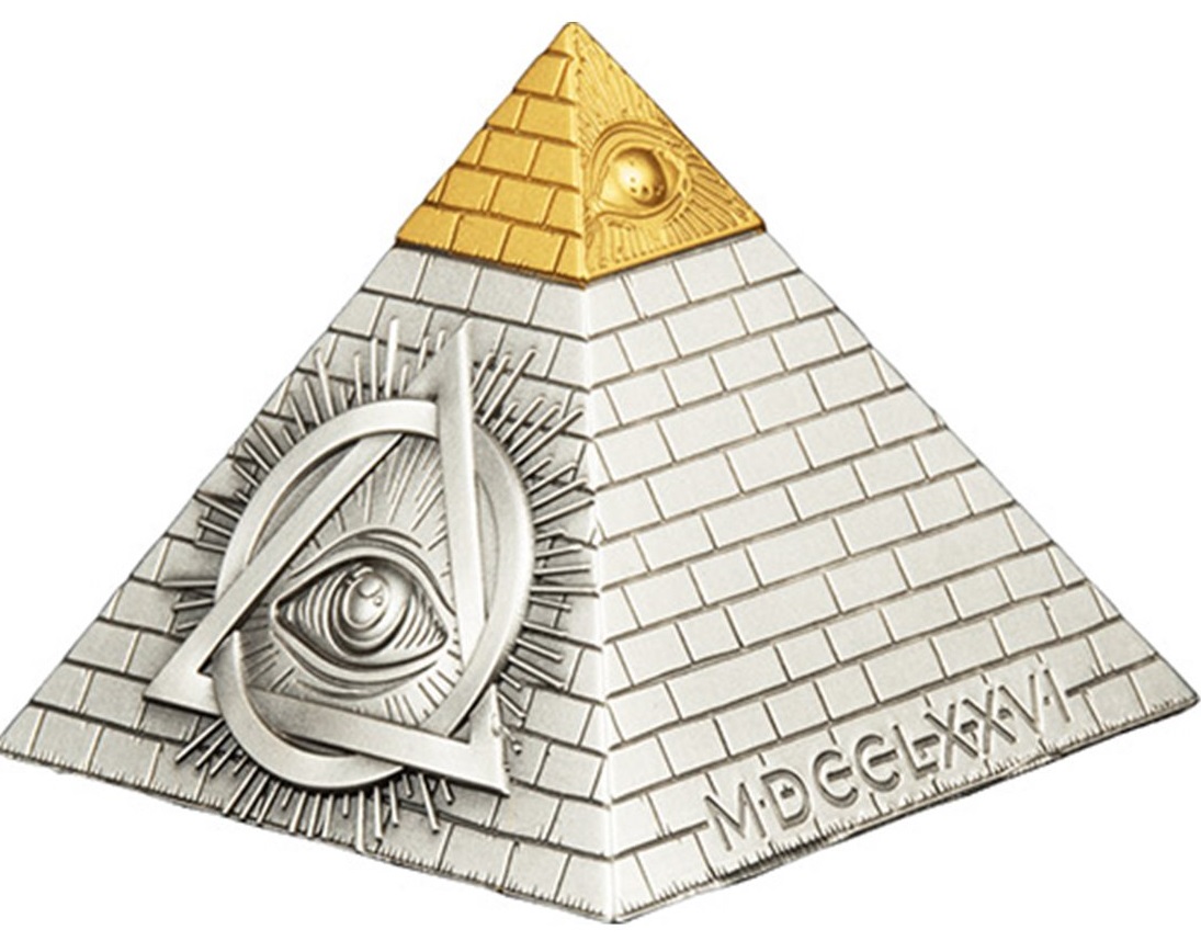 Эта великолепная серебряная монета весом в 5 унций представляет собой трехмерную пирамидальную монету, посвященную оку провидения. Монета имеет форму, качество античной отделки, частично позолочена и поставляется в коробке вместе с сертификатом подлинности. Лимитированная серия всего 750 штук по всему миру!
