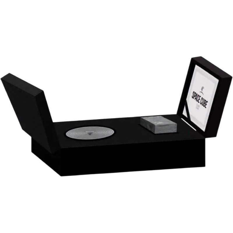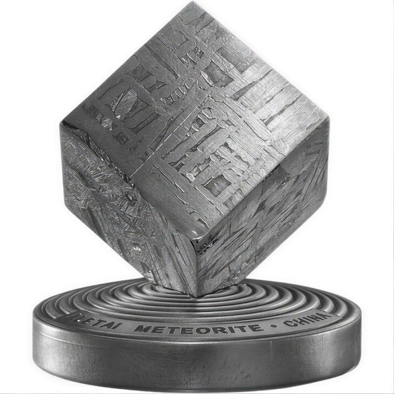 Эта невероятная серебряная монета - «Космический куб» посвящена драматическому столкновению Земли и легендарного гостя из глубин космоса — алетайского метеорита. Она состоит из двух частей: основания весом 500 граммов чистого серебра и самого космического куба, весом 500 граммов, целиком вырезанного из настоящего железного метеорита Алетай.