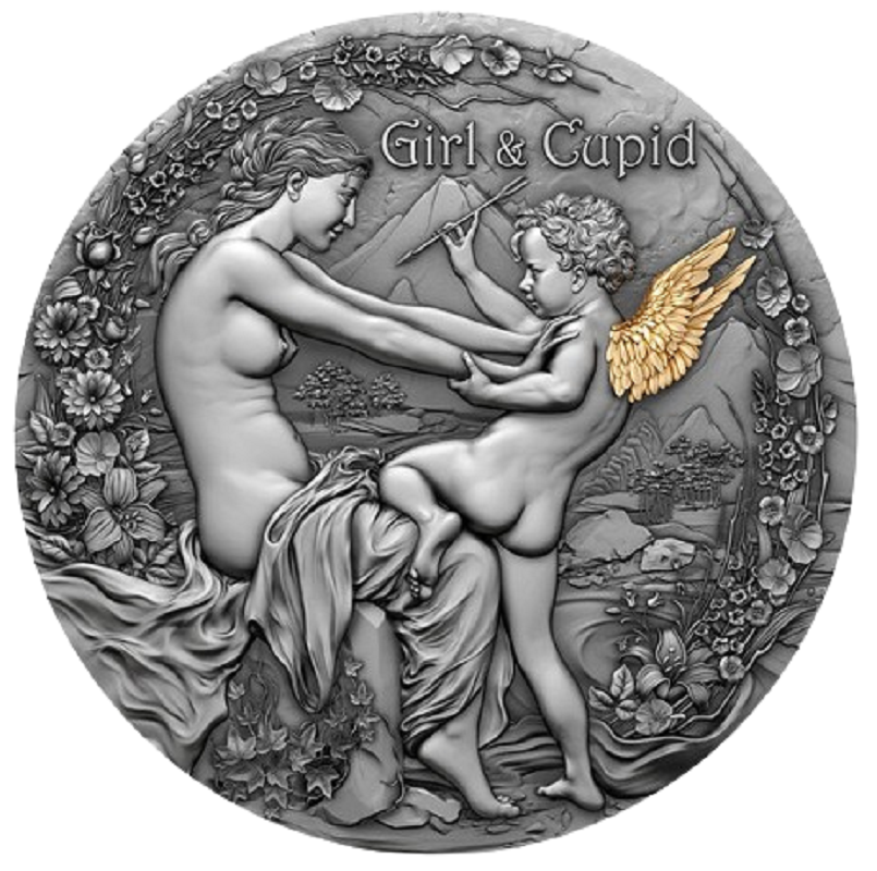 Эта красивая серебряная монета весом в 2 унции посвящена сцене поэтической любви, а точнее, Девушке и Купидону. Монета имеет античную отделку, прекрасные рельефы и выборочную позолоту. Он поставляется в футляре вместе с сертификатом подлинности. Ограниченный тираж всего 500 штук по всему миру.