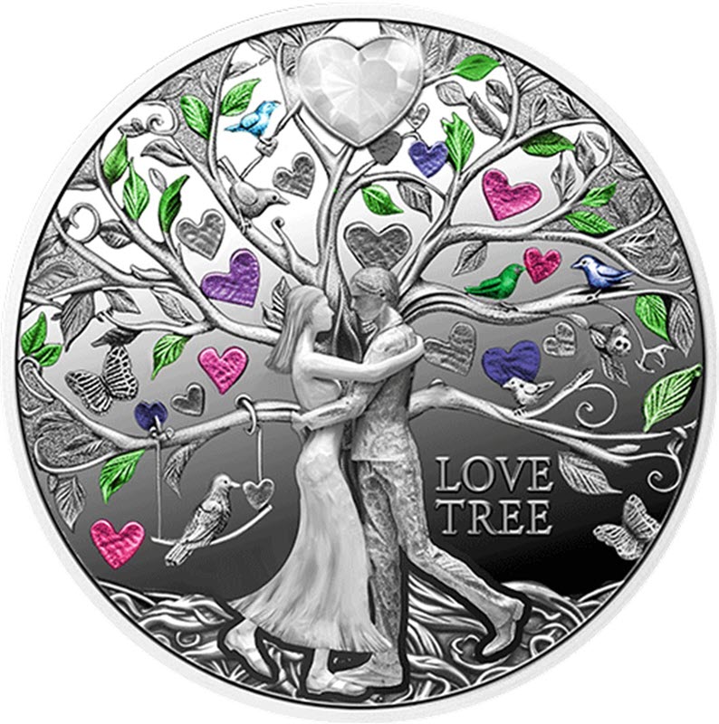 Эта чудесная серебряная монета посвящена разнообразию и красоте любви. У нее качество пруф и вставка из кристалла. Поставляется в футляре с сертификат подлинности. Тираж: 500 штук.