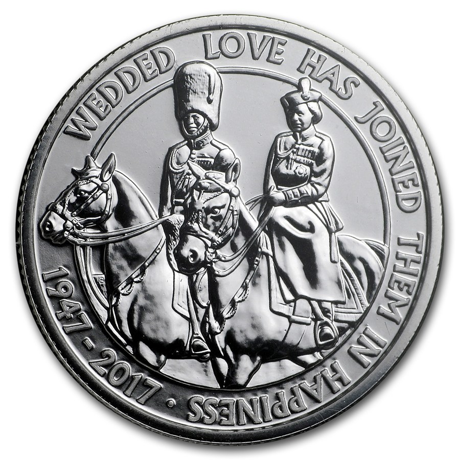 Серебряная монета Великобритании "Платиновая свадьба Елизаветы II и Принца Филиппа" 2017 г.в., 15.71 г чистого серебра (проба 999)
