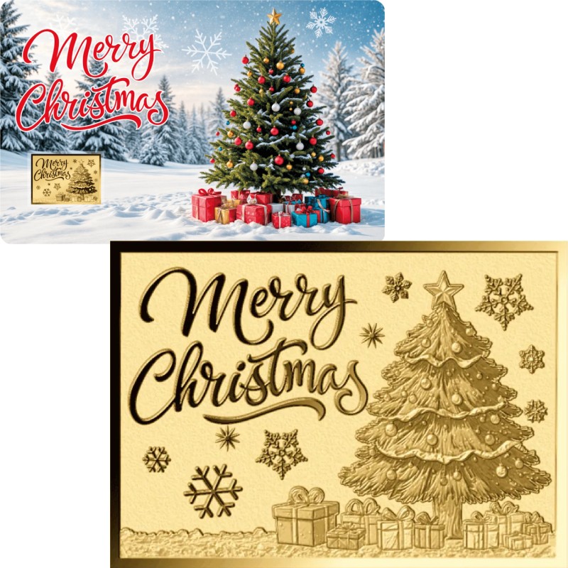 Эта потрясающая золотая монета весом 1/1000 унции посвящена символам праздника Рождества. У нее качество пруф-лайк. Поставляется в карточке с сертификатом подлинности. Тираж: 50 000 штук.