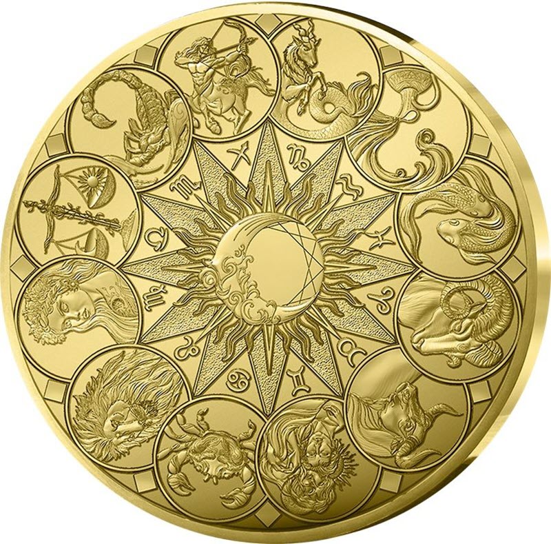 Золотая монета Франции 2026 года от монетного двора Monnaie de Paris «Потолки Оперы Гарнье» весом 4 грамма посвящена Астрологии. У нее качество BU. Поставляется в оригинальном футляре с сертификатом подлинности. Тираж: 5000 штук.