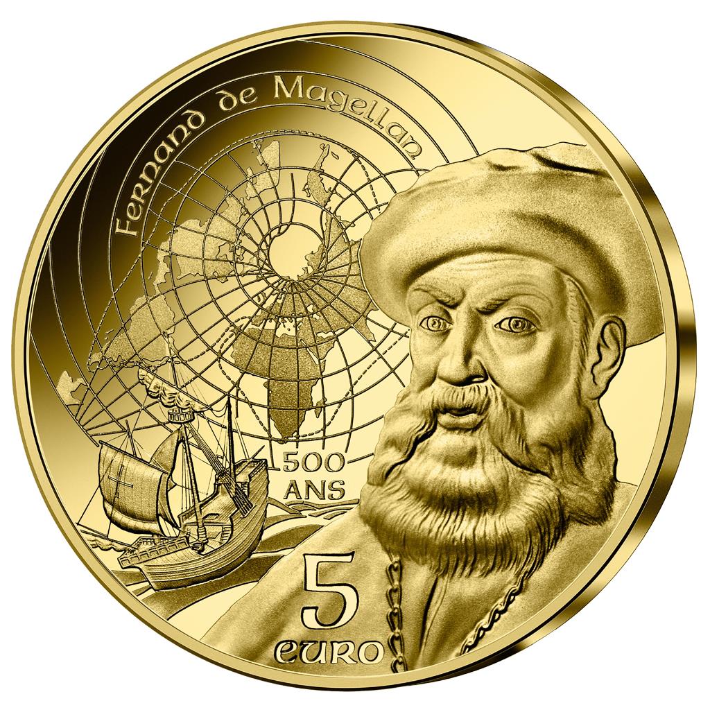 С 2007 года Монетный двор Парижа выпускает монеты в честь мест и достопримечательностей, внесенных в список Всемирного наследия ЮНЕСКО. Выпуск 2021 года посвящен 500-летию со дня смерти исследователя Фернандо де Магеллана. Монета номиналом 5 евро поставляется в оригинальной коробке с сертификатом подлинности.