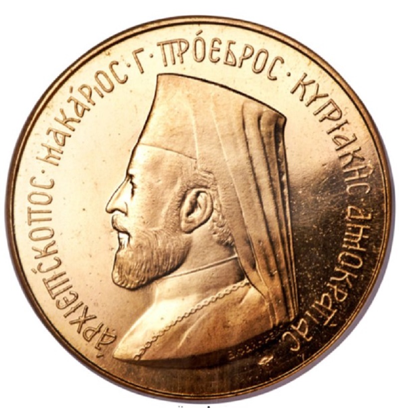 Эта памятная золотая монета архиепископа и президента Республики Кипр Макариоса III была отчеканена на Государственном монетном дворе Франции в Париже и поступила в продажу 6 июня 1966 года. И аверс, и реверс — работа греческого скульптора Василия Филиареса. Проект в поддержку Фонда Архиепископа Макариоса финансировался кипрским благотворителем г-ном А.Г. Левентисом.