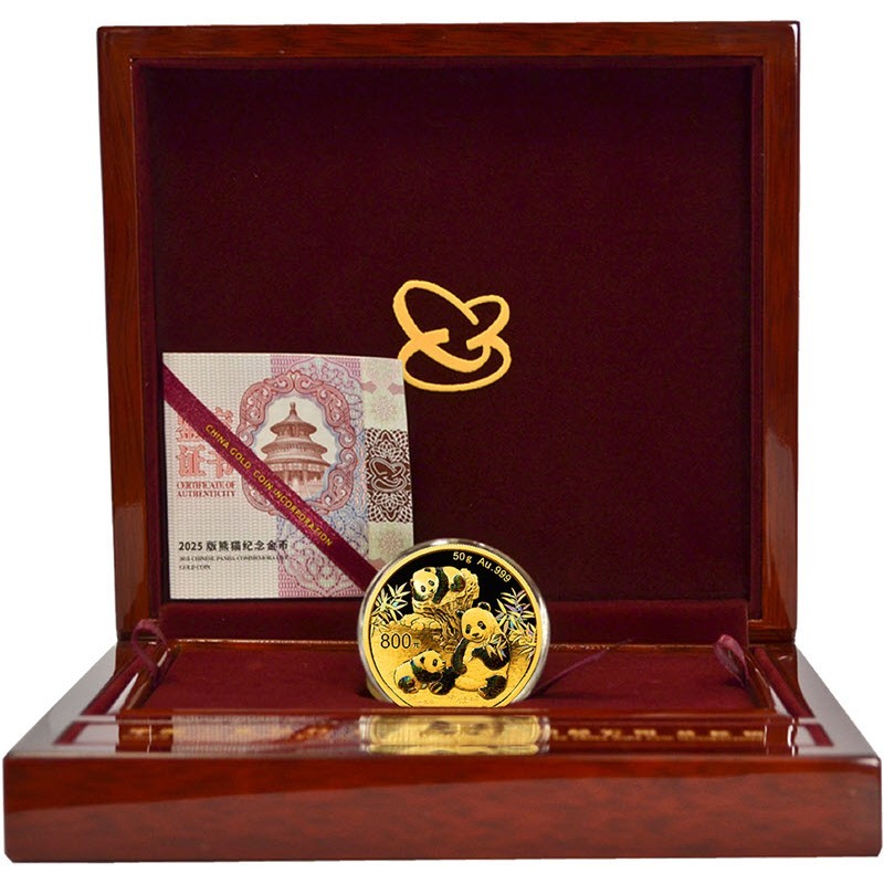Золотая монета Китая "Панда" 2025 г.в. (пруф), 50 г чистого золота (проба 999)