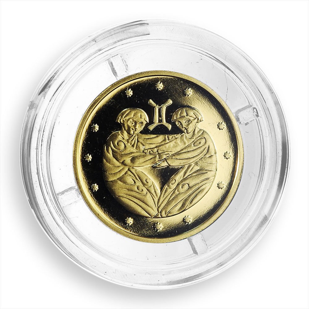 Золотая монета серии «Знаки Зодиака», посвященная зодиакальному созвездию «Близнецы».
