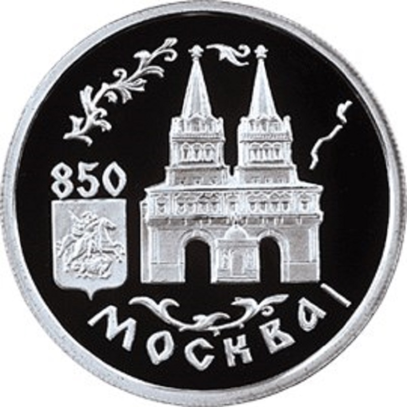 Российская серебряная монета, посвященная 850-летию основания Москвы.