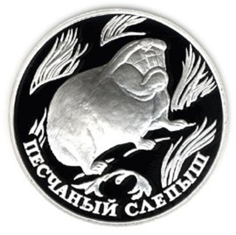 рельефное изображение песчаного слепыша, ниже по окружности - надпись: "ПЕСЧАНЫЙ СЛЕПЫШ".