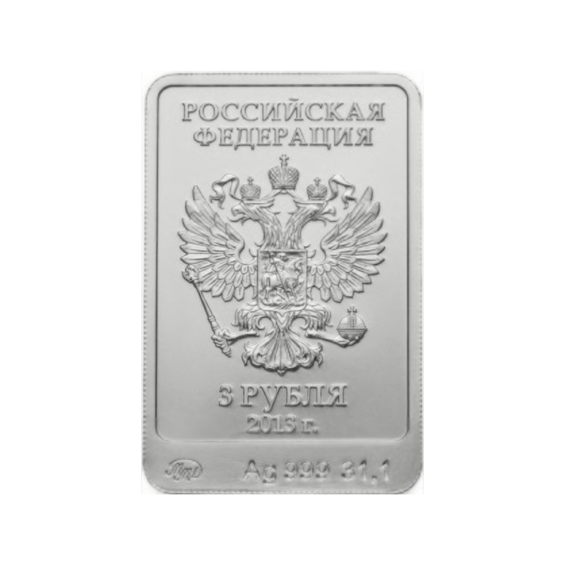 Аверс: рельефное изображение Государственного герба Российской Федерации, вверху в две строки – надпись: "РОССИЙСКАЯ ФЕДЕРАЦИЯ", под гербом в две строки – номинал монеты: "3 РУБЛЯ" и дата: "2013 г.", внизу вдоль канта обозначения: слева – товарного знака монетного двора, в центре – металла по Периодической системе элементов Д.И. Менделеева и пробы сплава, справа – содержания химически чистого металла.