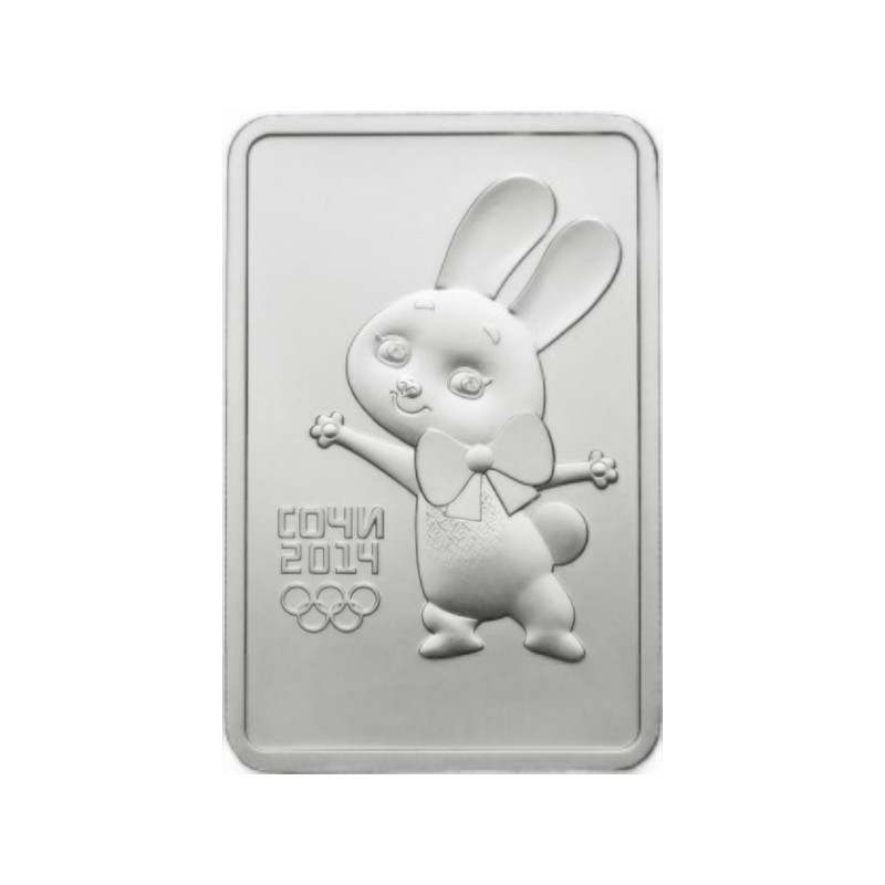 Серебряная инвестиционная монета Сочи - Зайка (Московский монетный двор - ММД), вес чистого золота - 31,1 г (проба 999)