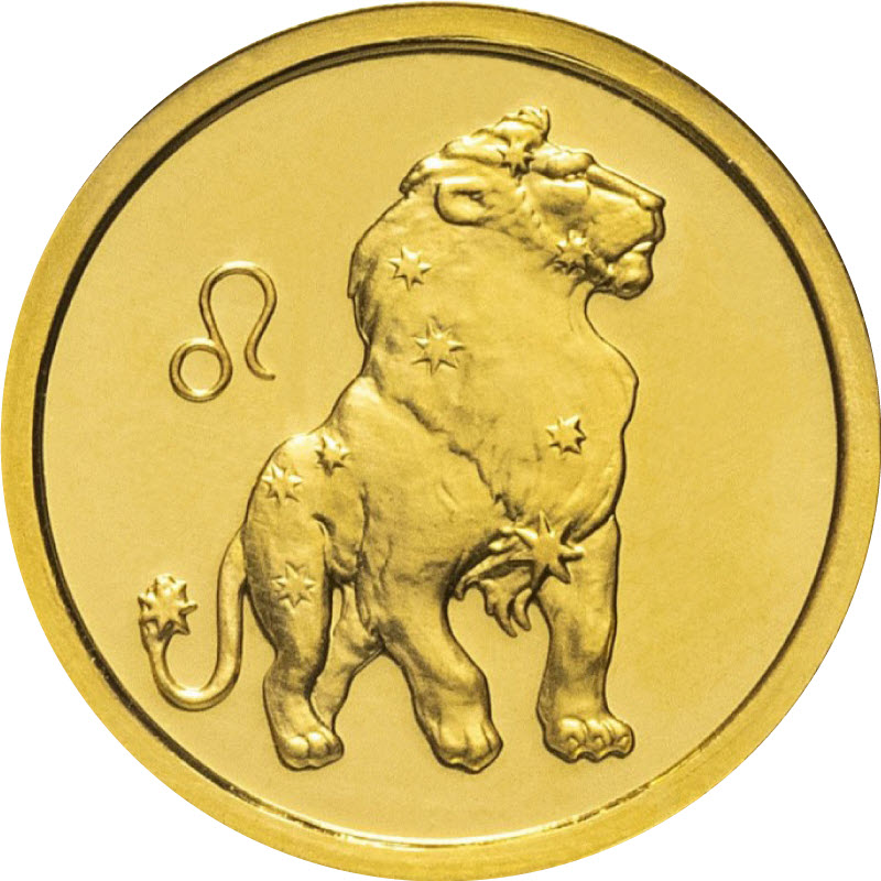 Российская золотая монета высшей пробы, посвященная знаку зодиака "Лев".